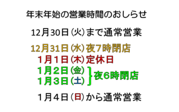 【山梨市本店、塩山店】年末年始の営業時間のお知らせ。